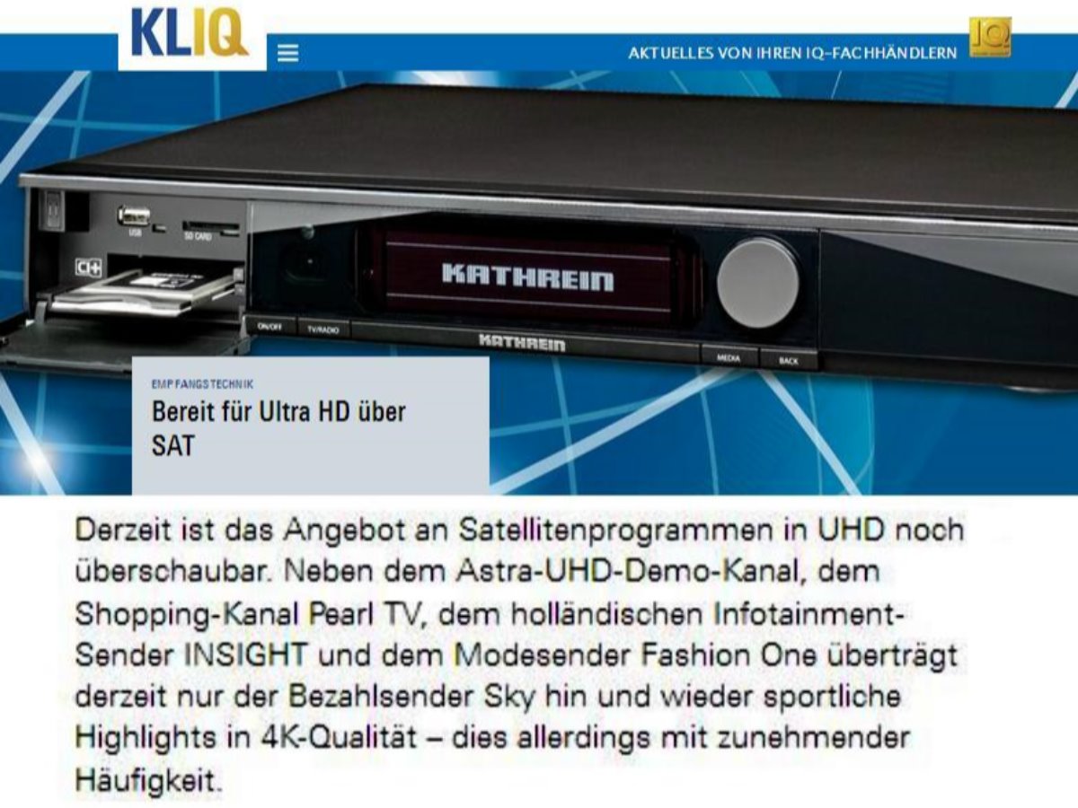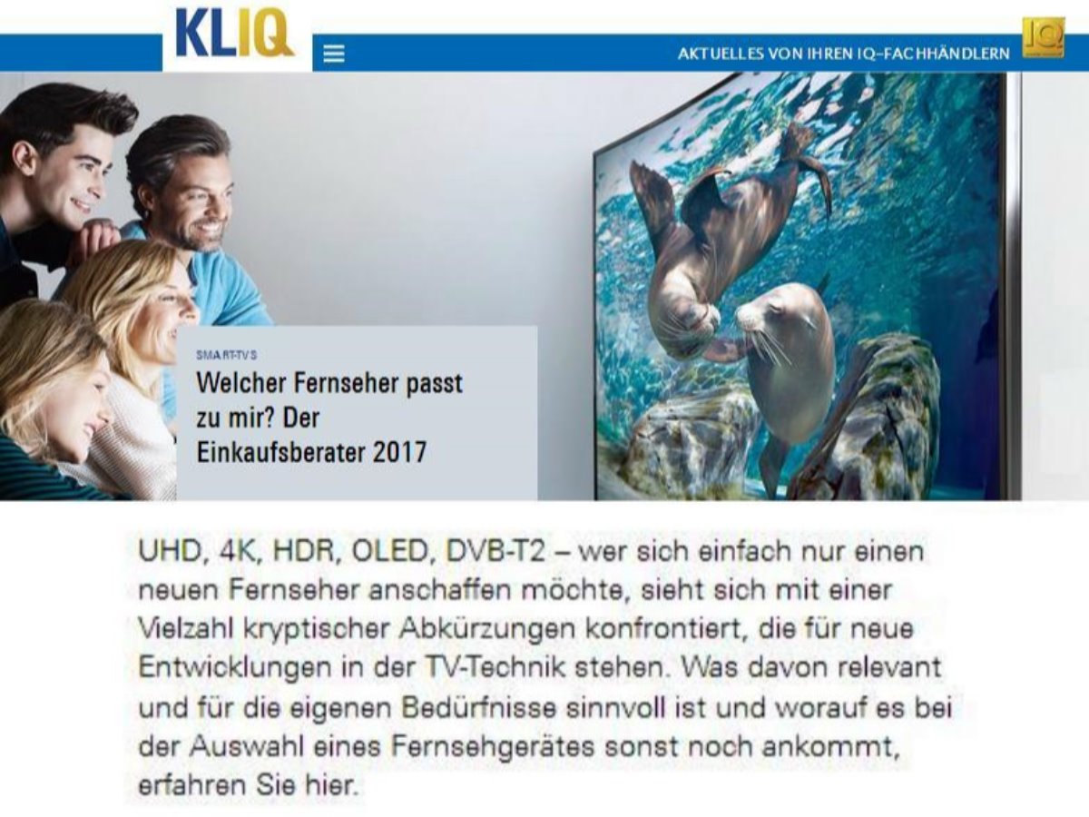 Auf unserer Seite http://www.kliq.de finden Sie viele aktuelle und interessante Berichte rund um die Themen TV, Empfangsanlagen und Haushaltsgeräte.